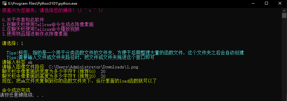 既然已经实现了单张像素画的生成,那么我们不妨多生成几张,然后利用schedule命令依次显示,利用这个原理就可以播放视频了。
