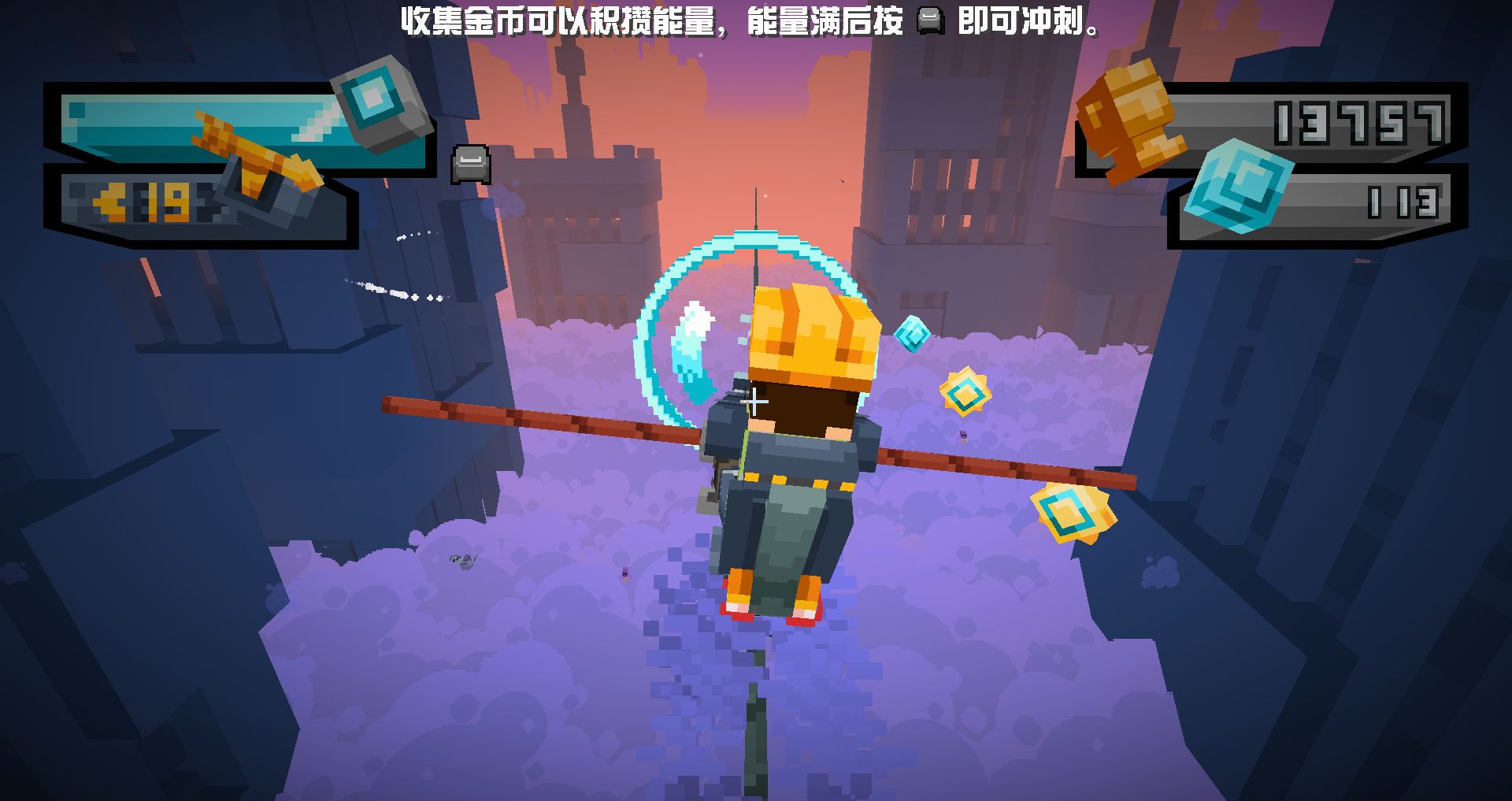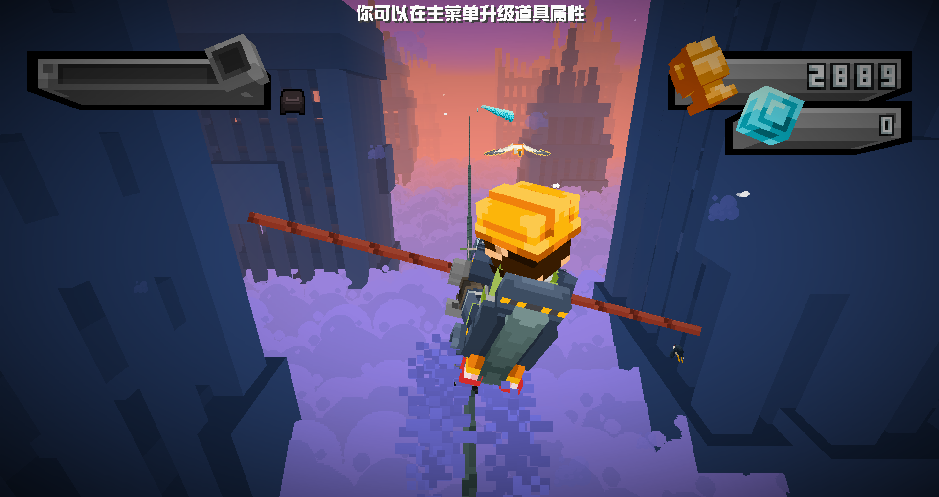 这是一张跑酷小游戏地图,你将在无尽的钢索上保持平衡,收集道具,躲避障碍,并邂逅各种鸟儿。